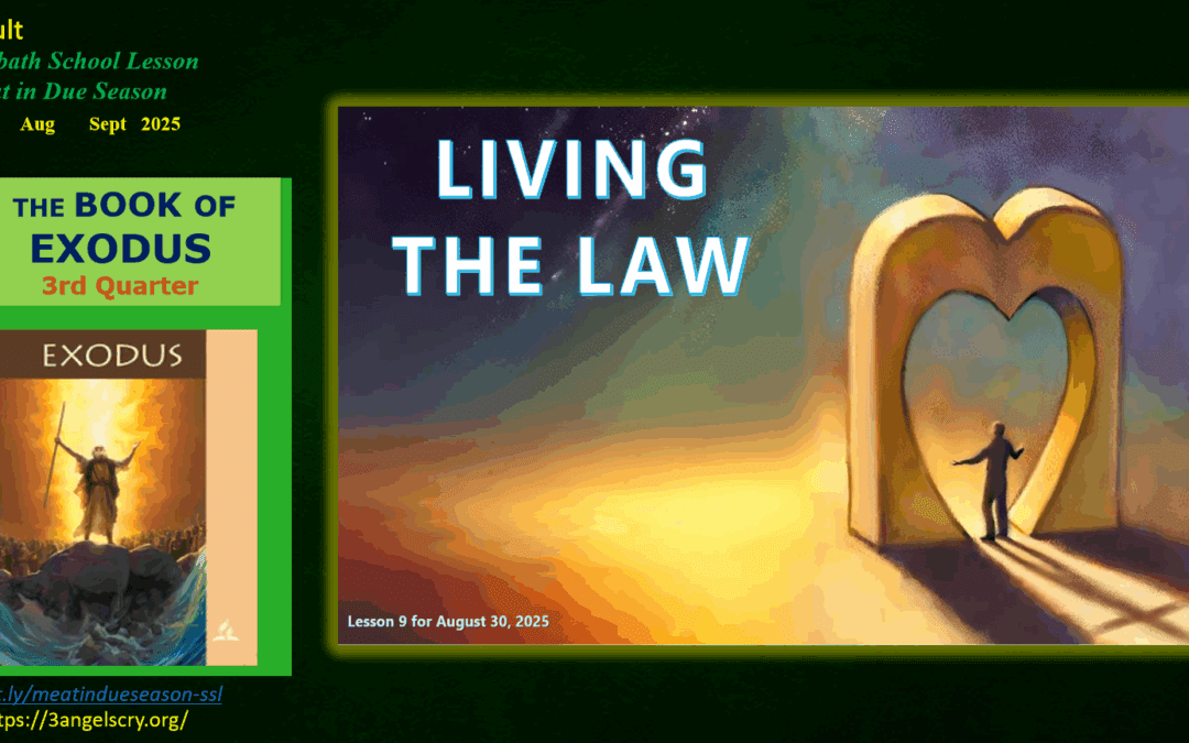 PDF: SS25-Q3-L9 – Living the Law by The Editor | Aug 26, 2025 | pdf, Sabbath School Lessons | 0 comments Submit a Comment Cancel replyYour email address will not be published. Required fields are marked *Comment * Name * Email * Website Save my name, email, and website in this browser for the next time I comment.